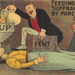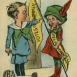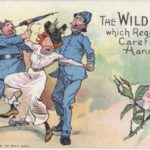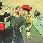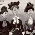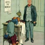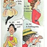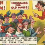 Razglednice v glaleriji so iz zgodnjega 20. stoletja (nekje med letom 1900 in 1914) in so opozarjale moške na “nevarnosti” sufražetskega gibanja in na posledice katerih bodo deležni, če se ženske emancipirajo.